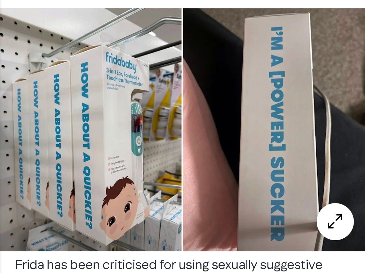 If you’re unaware of what I’m referring to, here’s some of the packaging and social media posts that Frida Baby uses to market and promote their baby products.