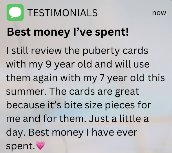I originally created Top Talks to use with my own kids. I based it off of the science-based sex ed programs that I had used in the classroom but added in the aspects that were relevant to parenting. Every year, I update the stats and add new lessons. Any new digital download that I create gets automatically added to Top Talks.