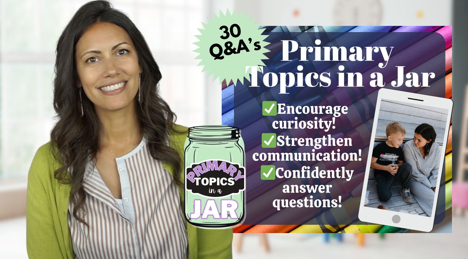 ✅It’s 30 questions with answers that allow you to build your confidence to age-appropriately start talking about sex, sexuality, and sexual health. And because you’re starting in the Primary age, you won’t be saying the word sex!